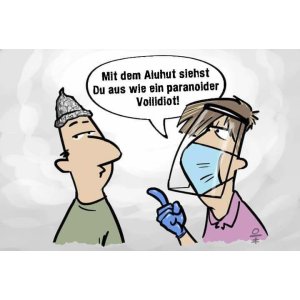 Trotz der ganzen harten Maßnahmen, dem als vermisst gemeldeten Grundgesetz, der zugrunde gerichteten Wirtschaft und den vielen traurigen Einzelschicksalen, darf man eines nicht aufgeben - den Humor. Zaubert er doch ein kleines Lächeln zumindest in die Gesichter derer, die sich nicht hinter der  Maske verstecken...