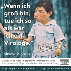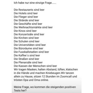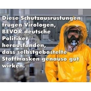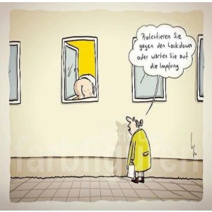Trotz der ganzen harten Maßnahmen, dem als vermisst gemeldeten Grundgesetz, der zugrunde gerichteten Wirtschaft und den vielen traurigen Einzelschicksalen, darf man eines nicht aufgeben - den Humor. Zaubert er doch ein kleines Lächeln zumindest in die Gesichter derer, die sich nicht hinter der  Maske verstecken...