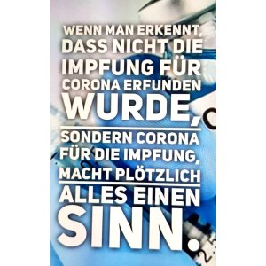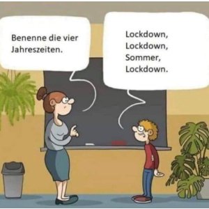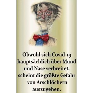 Trotz der ganzen harten Maßnahmen, dem als vermisst gemeldeten Grundgesetz, der zugrunde gerichteten Wirtschaft und den vielen traurigen Einzelschicksalen, darf man eines nicht aufgeben - den Humor. Zaubert er doch ein kleines Lächeln zumindest in die Gesichter derer, die sich nicht hinter der Maske verstecken...