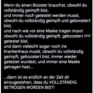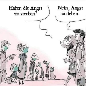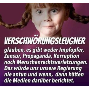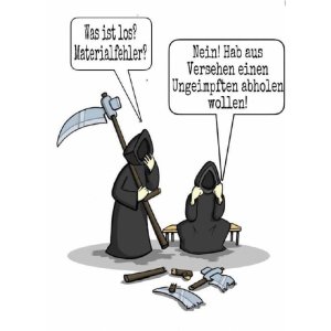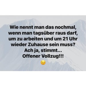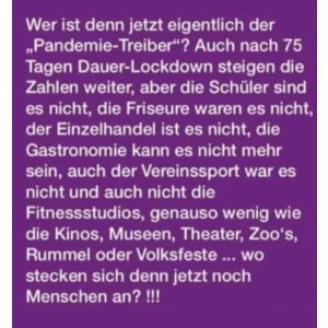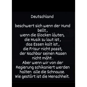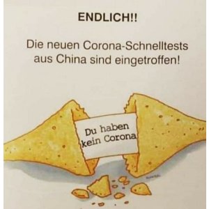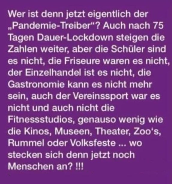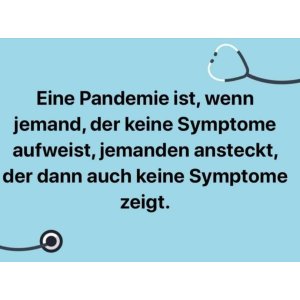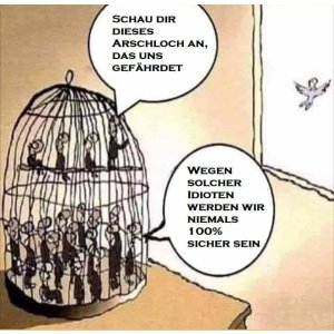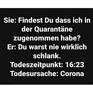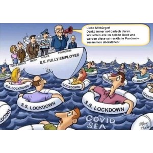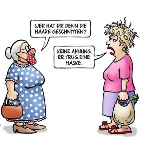 Trotz der ganzen harten Maßnahmen, dem als vermisst gemeldeten Grundgesetz, der zugrunde gerichteten Wirtschaft und den vielen traurigen Einzelschicksalen, darf man eines nicht aufgeben - den Humor. Zaubert er doch ein kleines Lächeln zumindest in die Gesichter derer, die sich nicht hinter der Maske verstecken...