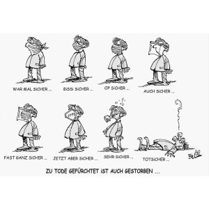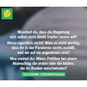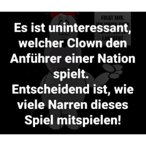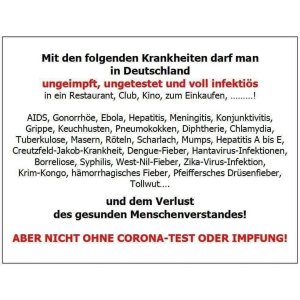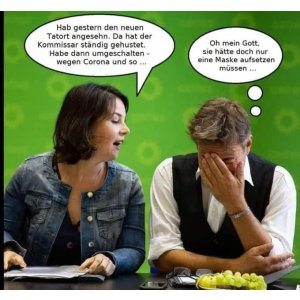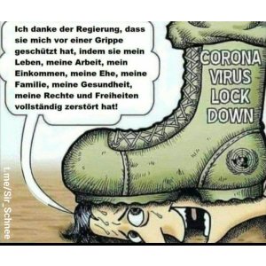 Trotz der ganzen harten Maßnahmen, dem als vermisst gemeldeten Grundgesetz, der zugrunde gerichteten Wirtschaft und den vielen traurigen Einzelschicksalen, darf man eines nicht aufgeben - den Humor. Zaubert er doch ein kleines Lächeln zumindest in die Gesichter derer, die sich nicht hinter der  Maske verstecken...